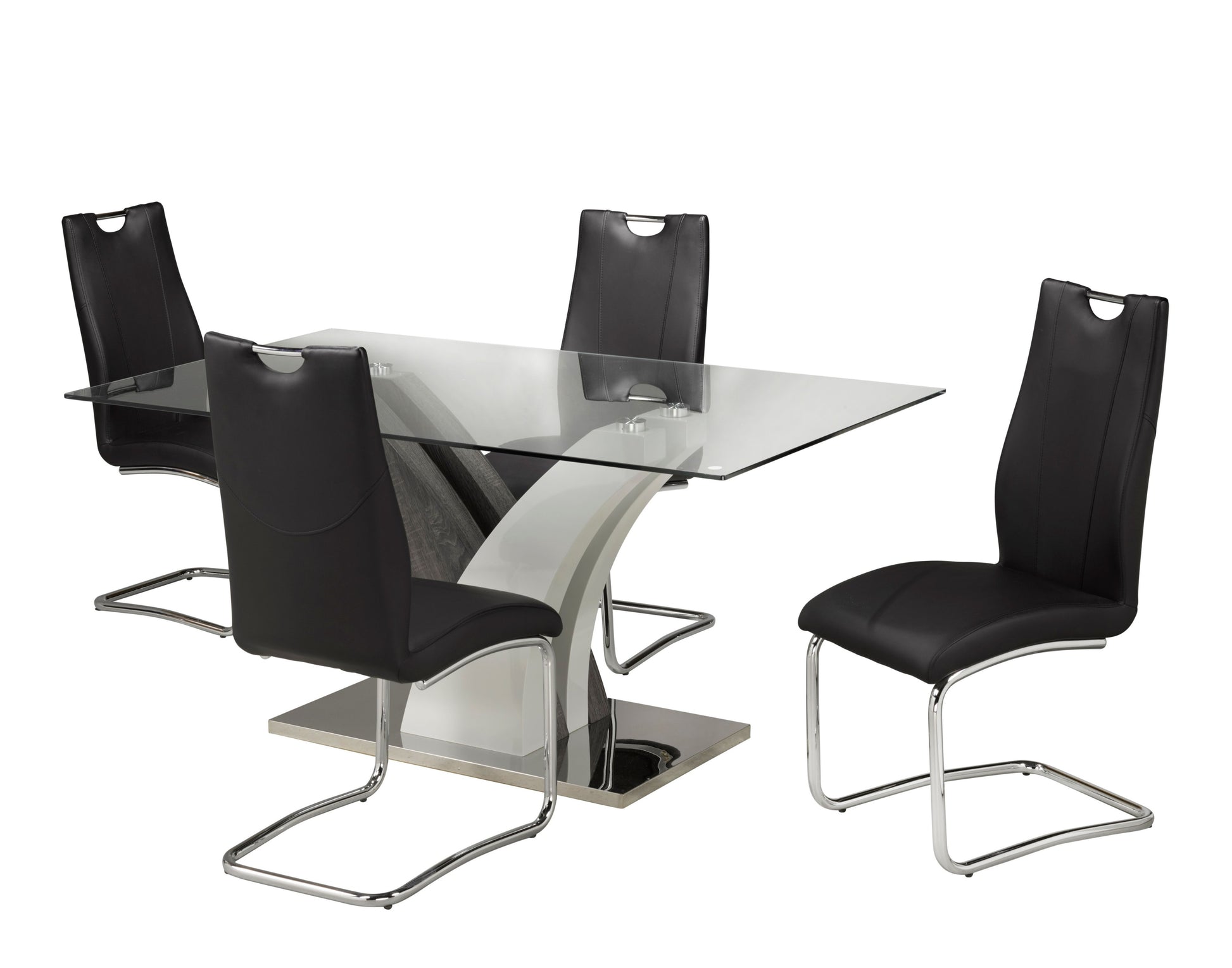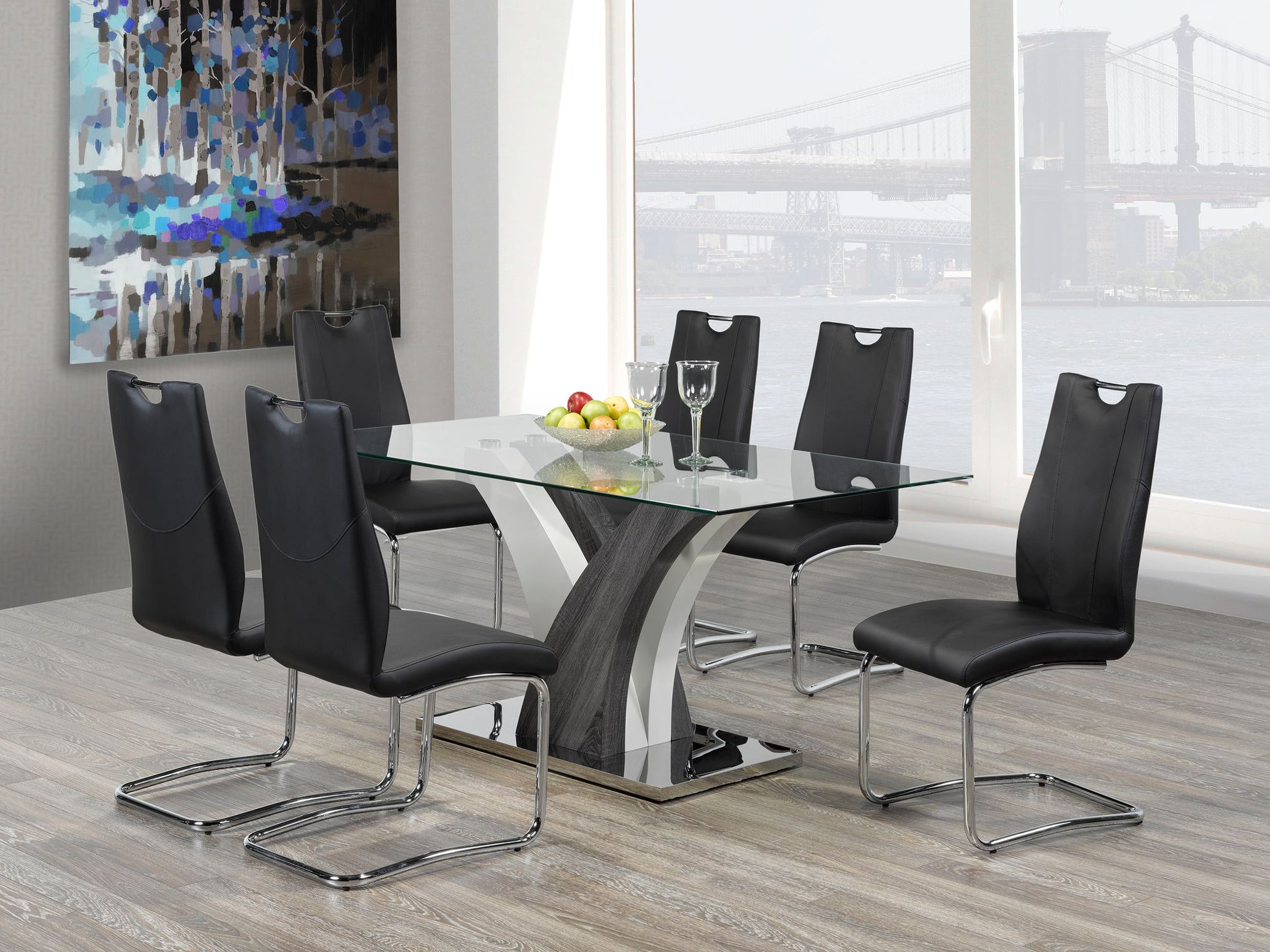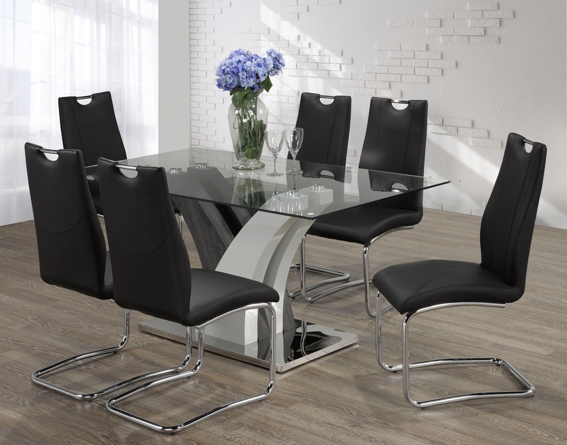 Cet ensemble de salle à manger contemporaine attire l'attention avec son design élégant et moderne. La table présente un dessus de table en verre trempé, soutenu par des socles doubles incurvés accrocheurs dans des couleurs contrastées populaires. À sa base se trouve une base en acier inoxydable, qui tient le regard vers les cadres de silhouette au fini chromé assortis des chaises de salle à manger aux coordonnées. Les chaises sont habilement recouvertes de similicuir à faible entretien enveloppant les sièges et les dossiers profilés dans le mais d'exprimer le confort et la beauté moderne en un seul souffle. Une fois que tout est réuni, vous obtenez un superbe ensemble de salle à manger construit avec une qualité durable et un confort durable à l'esprit.