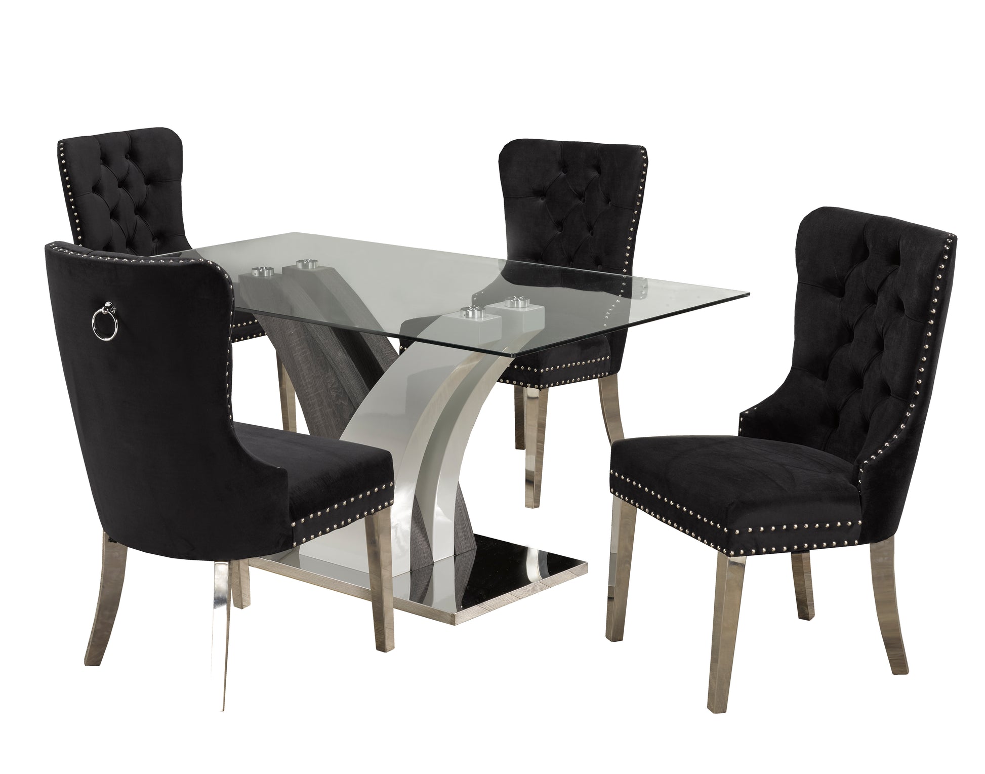 Apportez une touche de style contemporain à votre espace de vie avec cet ensemble de salle à manger magnifiquement conçu qui s'intègre à n'importe quel décor moderne. Avec une base de table aussi magnifique, elle doit être recouverte de verre trempé pour laisser passer la lumière sur cette base bicolore chromée. Les chaises présentent un design du milieu du siècle avec des pieds en acier revêtus d'une finition chromée brillante et un espace d'assise rembourré avec un dossier profilé enveloppé d'un rembourrage aux tons noirs assurent une coordination facile avec n'importe quelle palette de couleurs intérieures sans la submerger. Pour profiter d'un dîner familial confortable dans un cadre minimal et audacieux, optez pour cet ensemble de salle à manger de cinq pièces sera une affaire gagnant-gagnant.