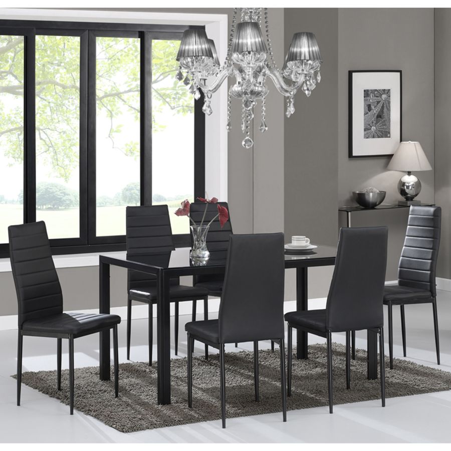Ensemble de salle à manger 7 pièces Contra en noir avec chaise noire