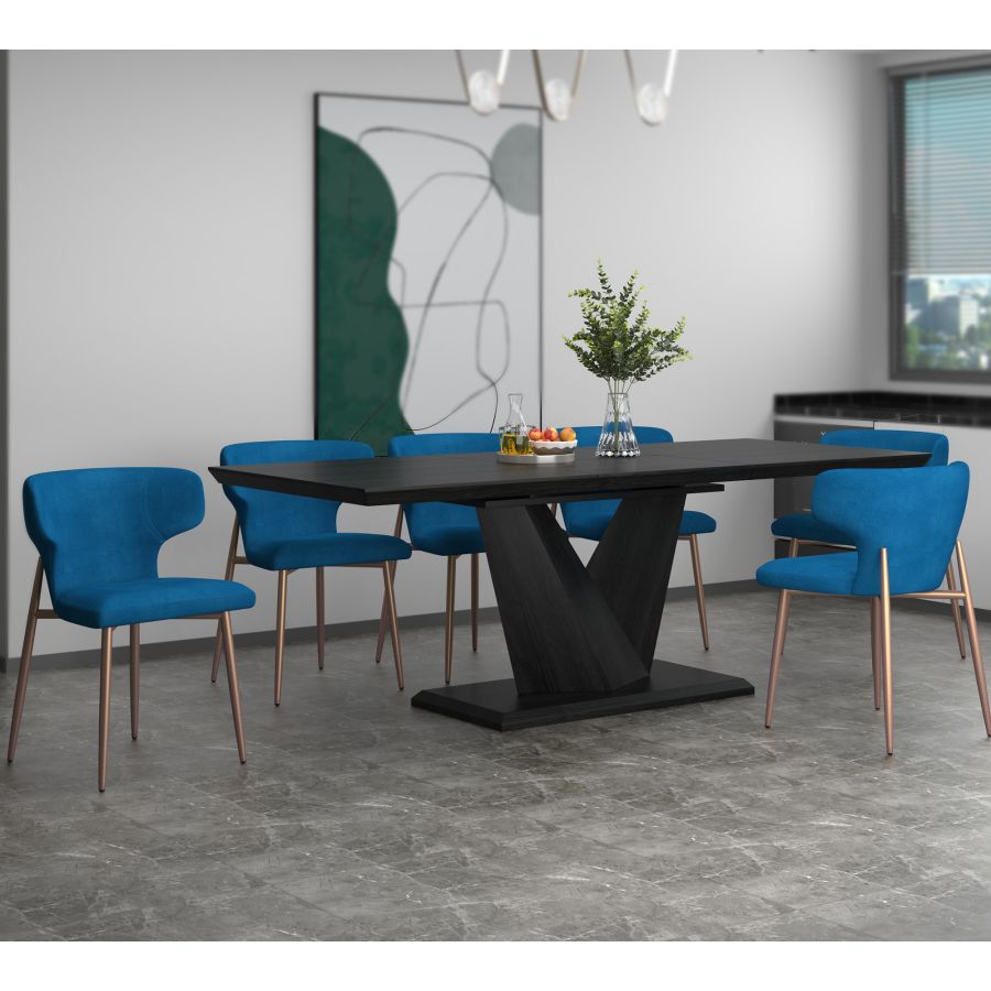 Ensemble de salle à manger 7 pièces Eclipse/Akira en noir avec chaise bleue ( Meuble Mtl )