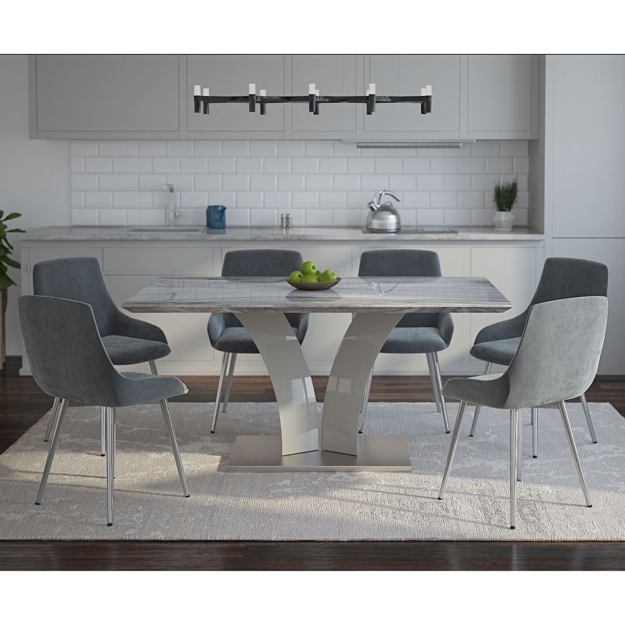 Ensemble de salle à manger 7 pièces Napoli/Cassidy en gris avec chaise grise