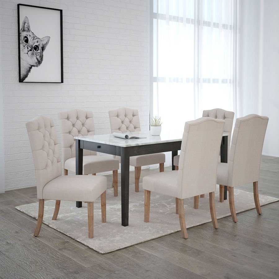 - Chaise de style transitionnel avec capitonnage moelleux et passepoil sur le dossier du siège