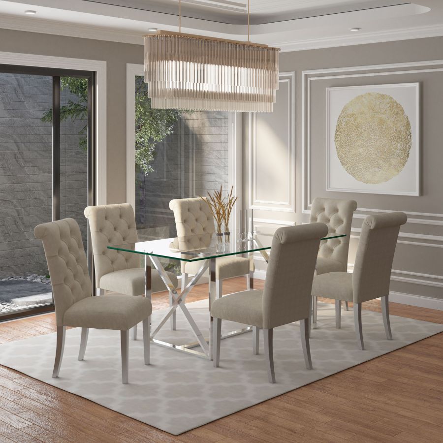 Ensemble de salle à manger Lorenzo/Chloe 5 pièces en chrome avec chaise beige