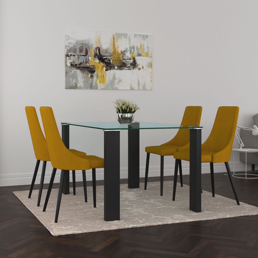 Ensemble de salle à manger Vespa/Venice 5 pièces en noir avec chaise moutarde