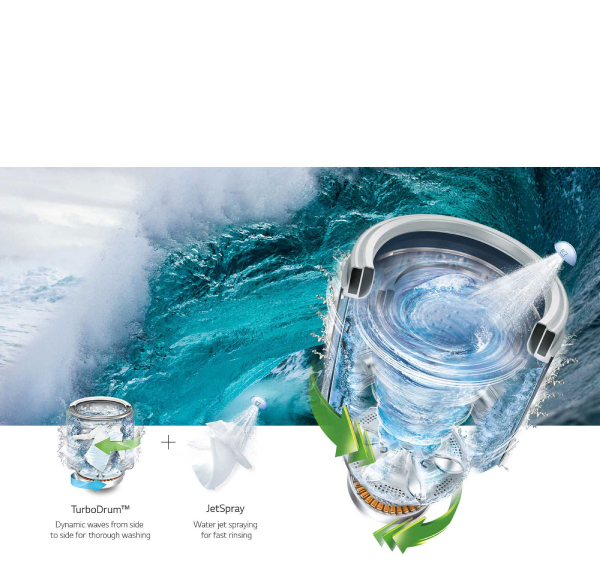 La technologie TurboWash3D lave vos vêtements dans toutes les directions, tandis que le tambour TurboDrum tourne dans le sens inverse pour un nettoyage puissant