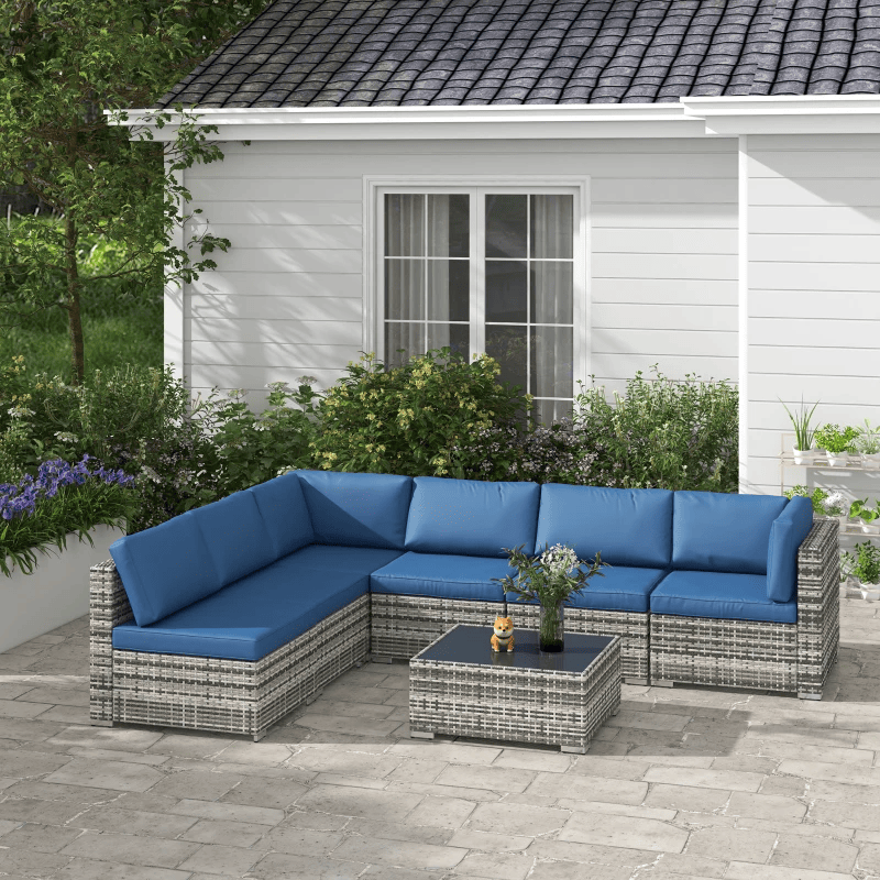 Ensemble sectionnel de jardin en osier, 7 pièces, avec Table à thé, Patio, canapé de salon en rotin, meubles de terrasse d'extérieur, bleu