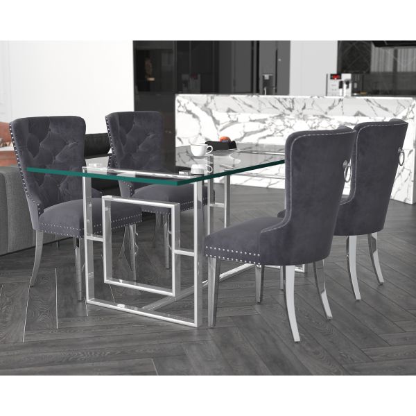 Ensemble de salle à manger 7 pièces Eros/Hollis en argent avec chaise grise