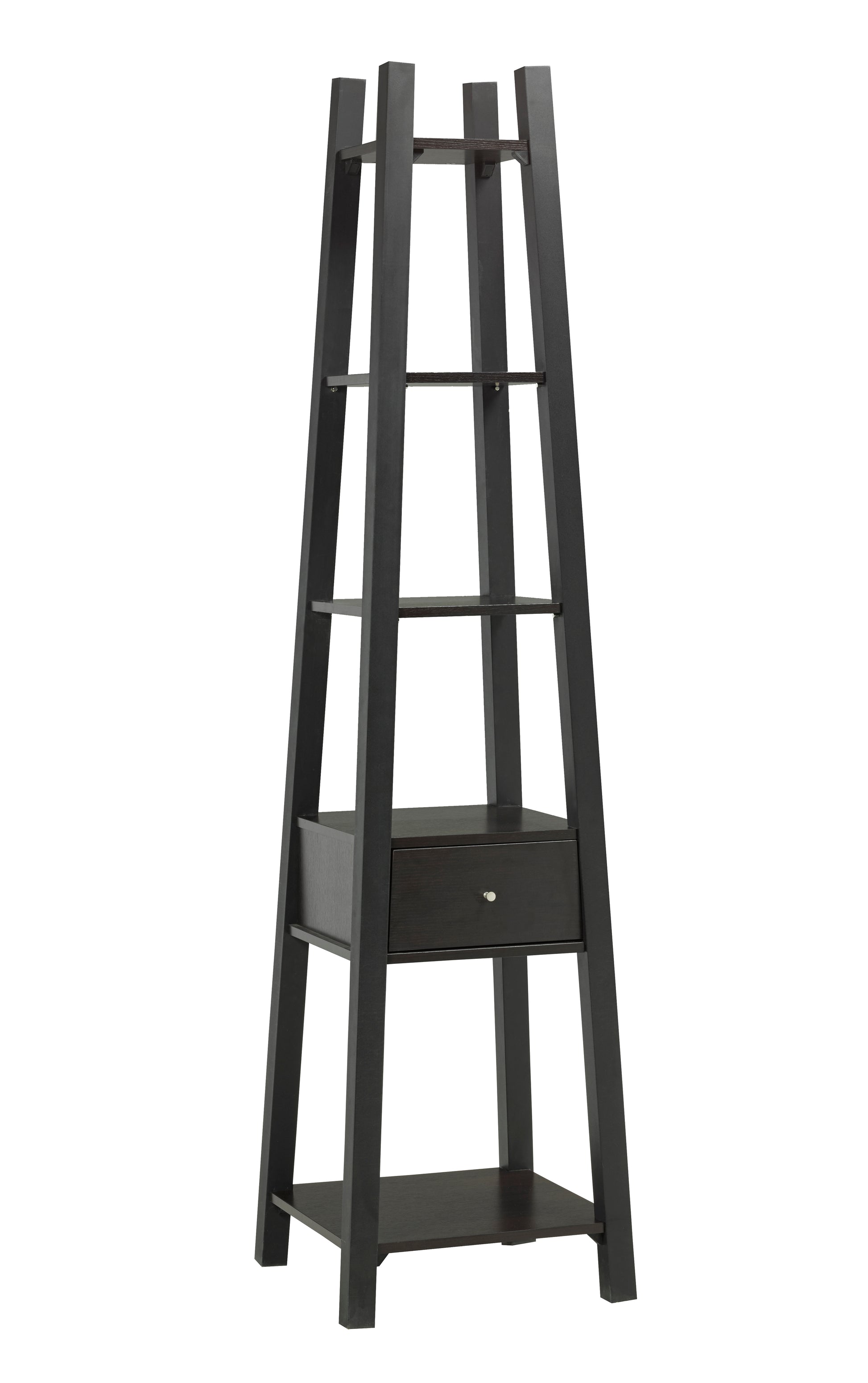 La conception conique inversée de cette étagère aérée attire les yeux vers le haut où vous pouvez afficher vos articles préférés absolus. Un tiroir central pour le rangement et la finition traditionnelle en cerisier foncé apportent une fonctionnalité et un luxe supplémentaires à votre espace. Disponible en cerisier foncé avec quincaillerie argentée.