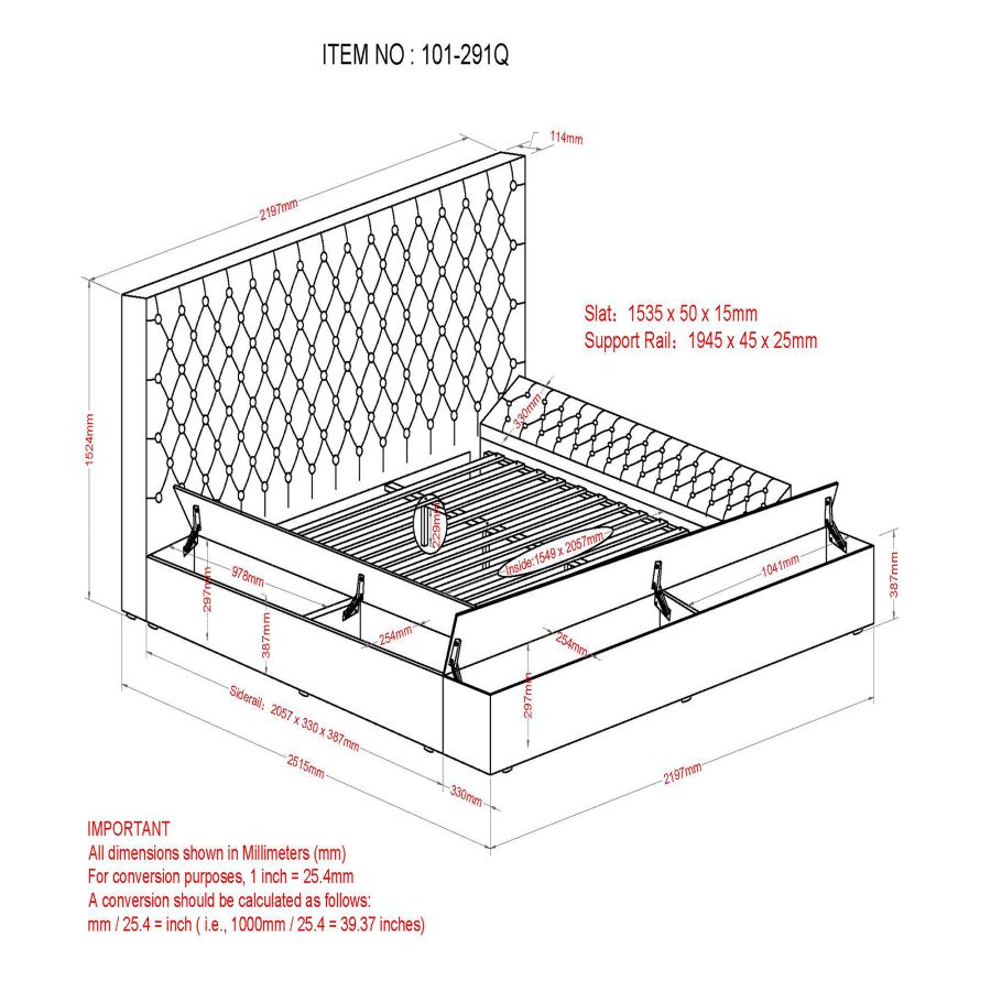 Style contemporain et fonctionnalité se marient à merveille dans ce lit de rangement. Le revêtement en velours avec capitonnage de boutons tout autour du profil bas crée un design qui attire l'attention. Les compartiments de rangement offrent beaucoup d'espace pour ranger la literie, les livres, les chaussures ou d'autres articles. Les lattes et les pieds de support signifiant qu'aucun sommier n'est nécessaire.