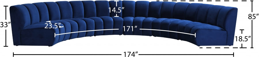 Créez un groupe de sièges qui convient à toutes les situations possibles grâce à ce sectionnel modulaire Infinity de 6 pièces et aux autres pièces de la collection Infinity. Recouverte d'un matériau en velours doux qui se sent bien contre la peau et offre une beauté longue durée, cette pièce s'adapte avec d'autres articles Infinity pour un nombre infini de combinaisons qui répondent à vos besoins en matière de siège, mais qui sont tout aussi belles lorsqu'elles sont utilisées seules. .