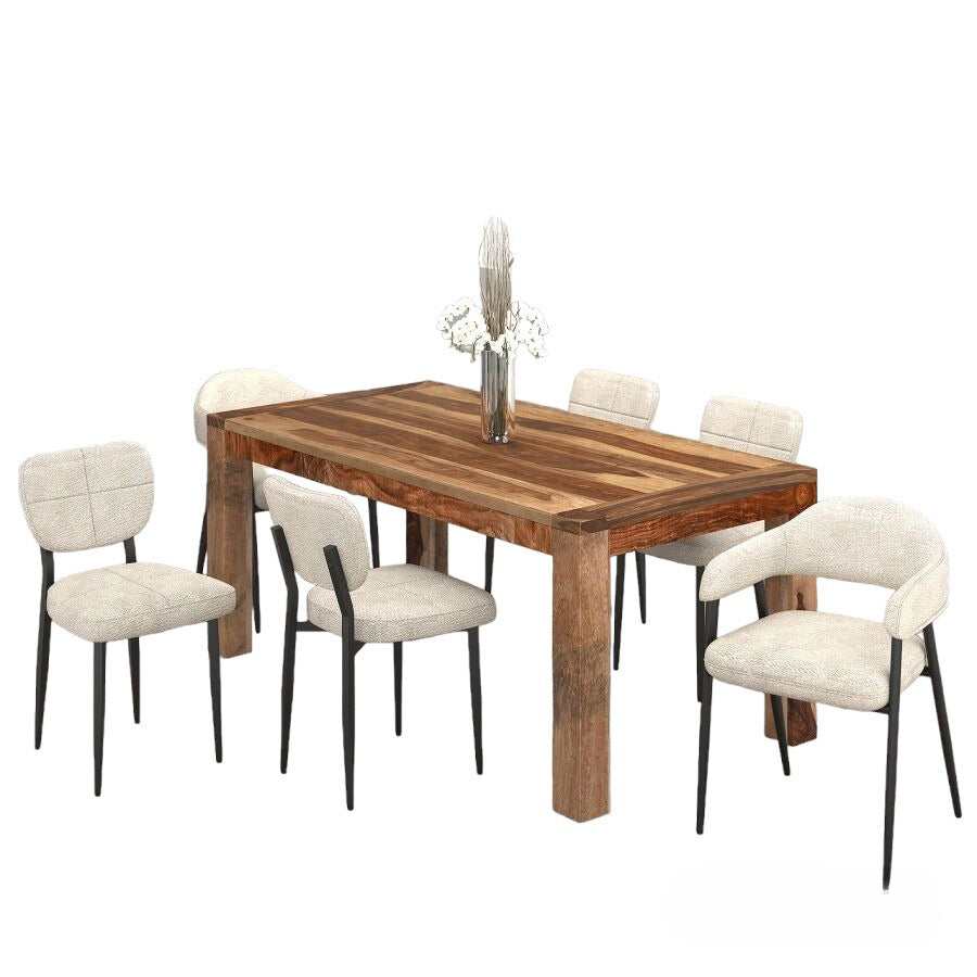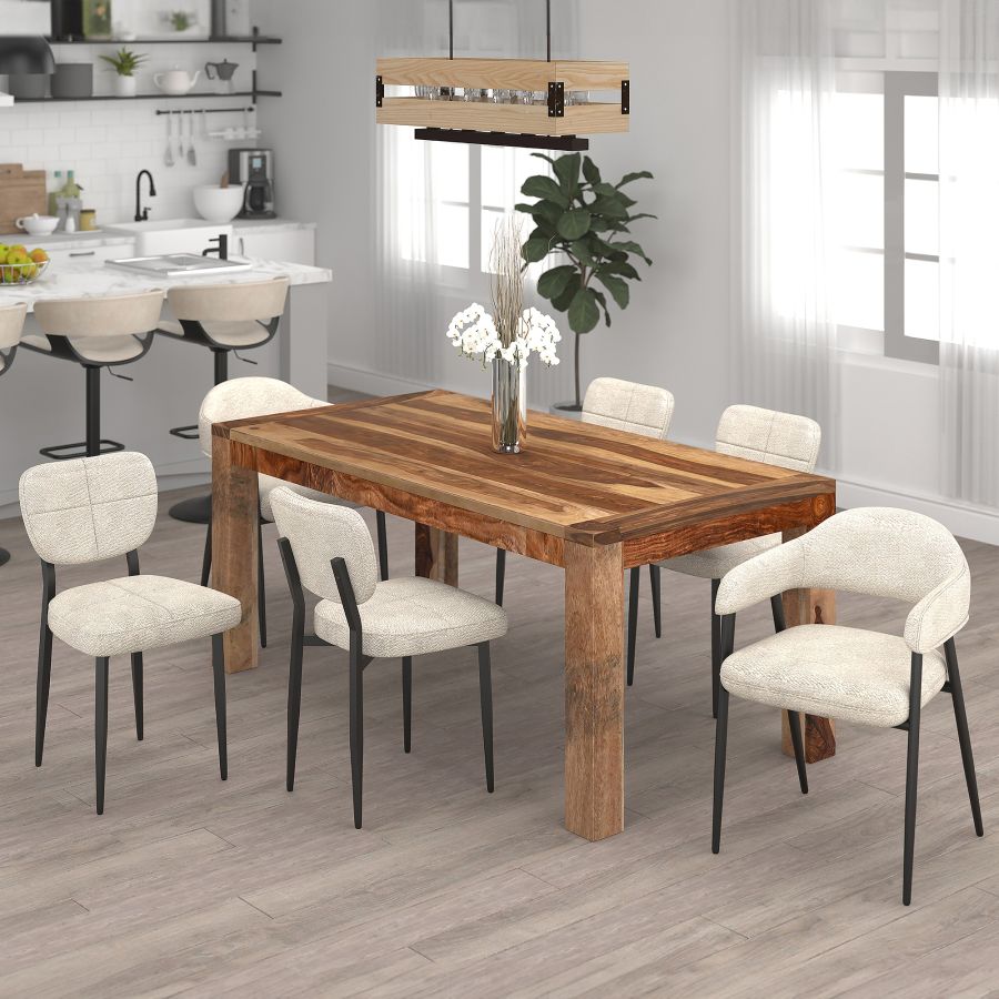 Krish/Archer/Zeke Ensemble de salle à manger 7 pièces en Sheesham avec chaises beiges ( Meuble Mtl )
