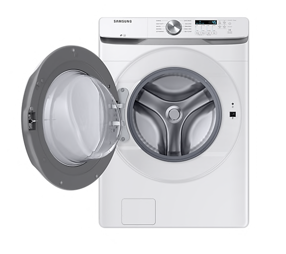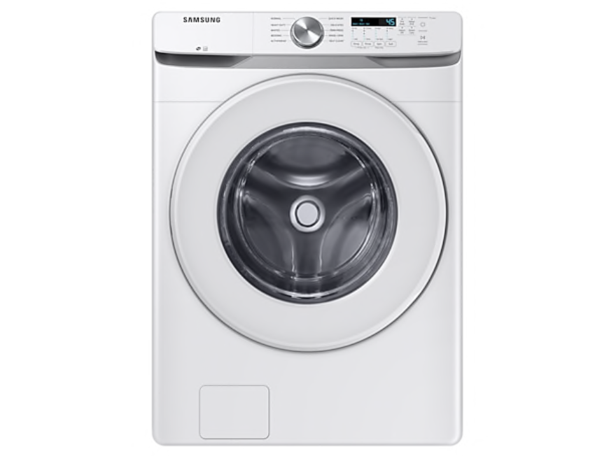 Laveuse frontale Samsung WF45T6000AW , 27 po. Largeur, Certifié ENERGY STAR, 5.2 pi. pi.cu. Capacité, 10 Cycles de lavage, 5 Réglages de température, Empilable, 1200 RPM Vitesse de rotation de la laveuse, couleur Blanc