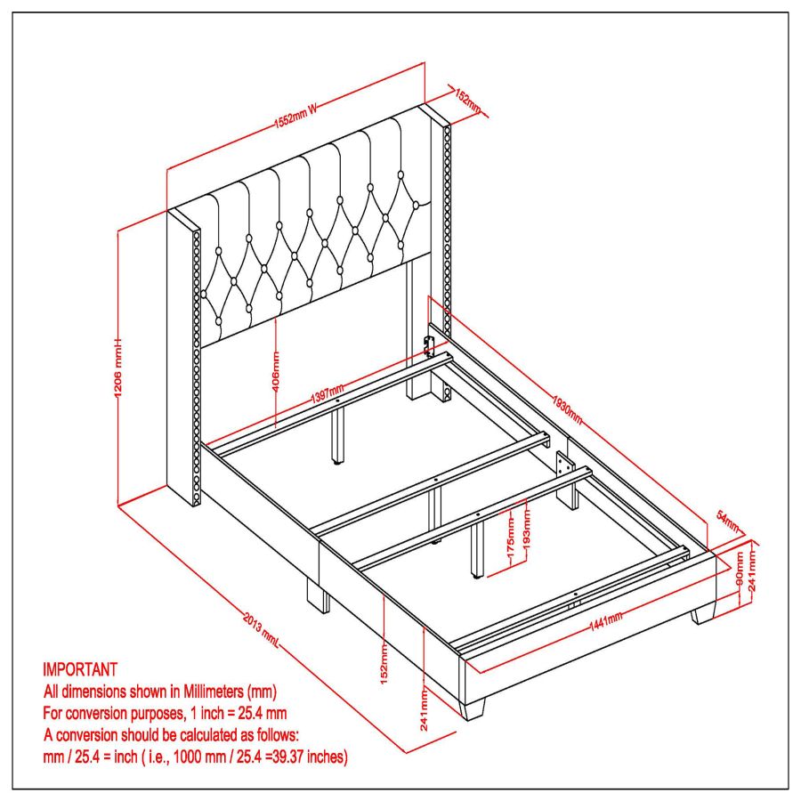 Un style élégant rendu facile grâce à l'emballage bed-in-box. La tête de lit formidable avec le capitonnage de boutons et les détails de la tête de clou aura l'air spectaculaire dans une chambre principale ou sera très accueillante dans une chambre d'amis. Des lattes en bois massif robustes contiennent bien votre sommier et votre matelas.
