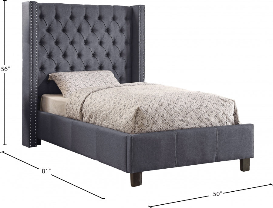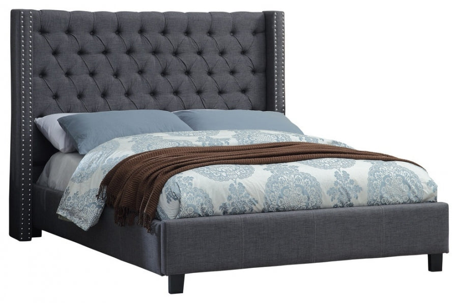 Élégant et accrocheur, le superbe lit Ashton de Meridian Furniture est le complément parfait à tout espace. Rich Linen recouvre la conception capitonnée profonde. Une belle conception de lit d'aile est complétée par des détails de tête de clou chromés appliqués à la main. La force et la beauté sont garanties avec un cadre et des pieds en bois massif.