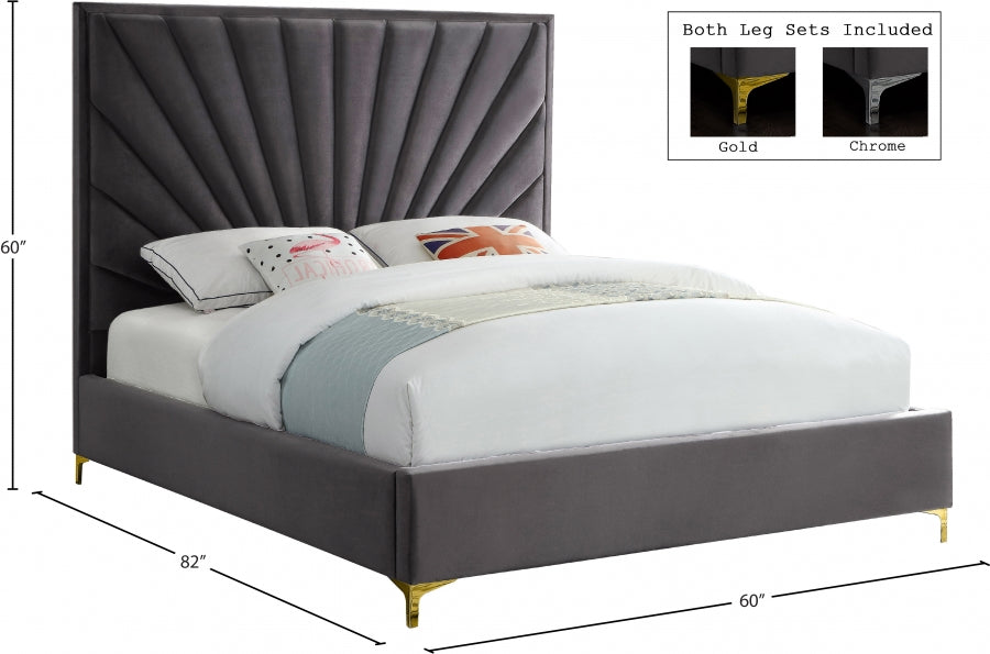 Augmentez le facteur wow dans votre chambre à coucher avec ce lit Eclipse de Meridian Furniture. Un superbe revêtement en velours dans une couleur rose chic apporte une élégance et une richesse de style à votre espace. Un motif de coque en forme d'éventail sur la tête de lit est obtenu avec un capitonnage en canaux, qui également la tête de lit rembourrée dodue et, de sorte qu'elle soutient votre dos pendant que vous vous asseyez dans le lit, en écoutant vos émissions préférées. Les pieds en métal complètent l'aspect luxueux de ce lit, lui donnant une inclinaison à la mode.