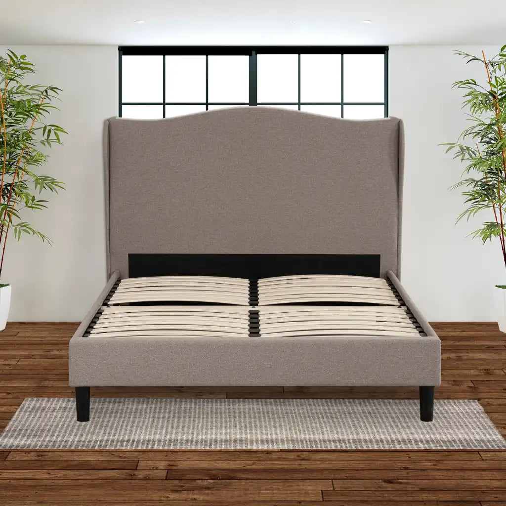 Pensé pour allier style et simplicité, ce lit repose sur une structure robuste en bois massif et contreplaqué. Le système de lattes intégré permet de poser votre matelas directement sur la base, éliminant ainsi le besoin d'un sommier pour conserver un profil épuré. Avec sa silhouette raffinée et son fini gris neutre, le Greta est le choix parfait pour transformer n'importe quelle chambre en une suite sophistiquée et chaleureuse.