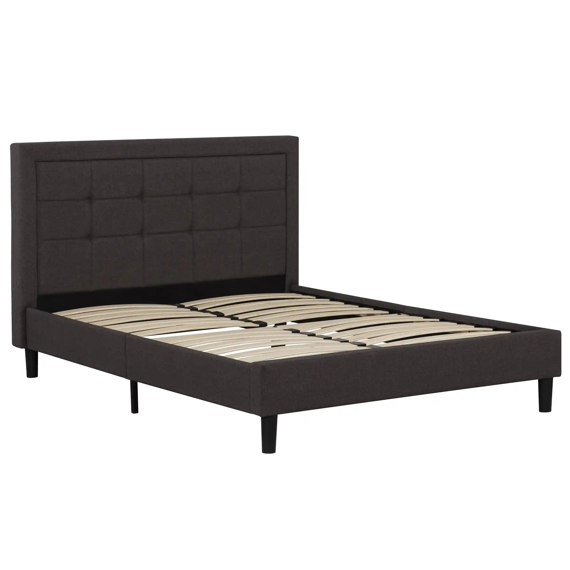 Créez un sanctuaire de détente avec une pièce maîtresse au charme classique. Le lit Idalia de la collection Griffintown se distingue par sa tête de lit richement capitonnée, habillée d'un tissu aspect lin de couleur charbon. Ce fini texturé apporte une profondeur visuelle et une douceur accueillante, tandis que ses pieds noirs discrets complètent son allure résolument contemporaine.