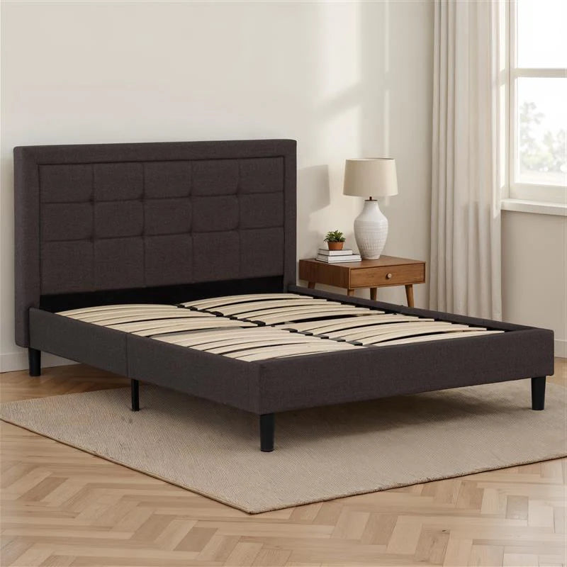 Idalia : Le Lit Plateforme en Lin Charbon Capitonné