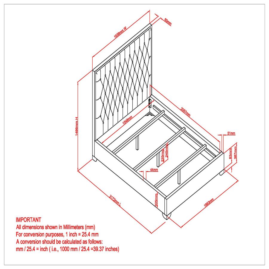 - Tête de lit capitonnée à motif de diamants avec cadre en acier inoxydable poli