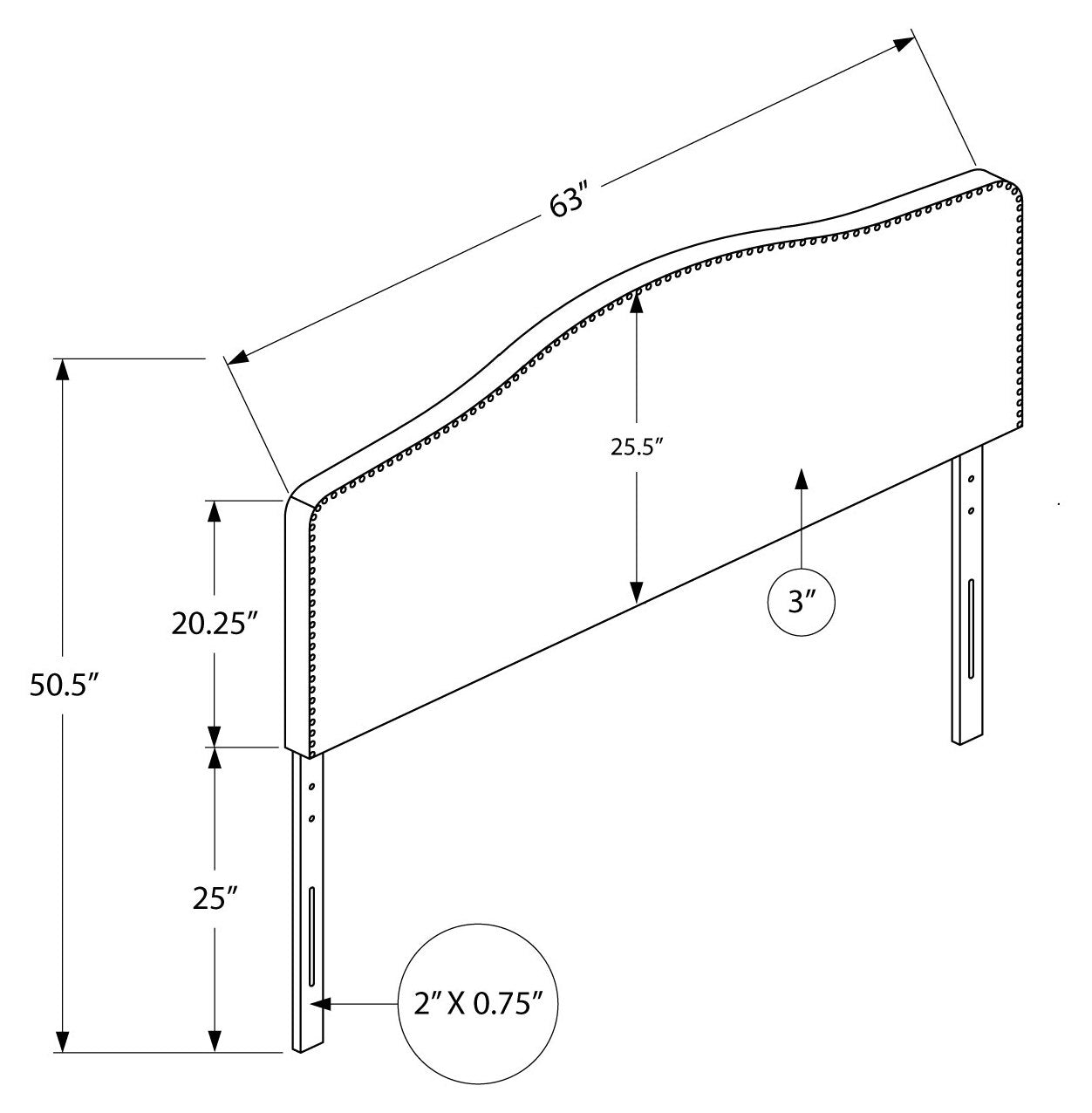 - Tête de lit capitonnée à dessus arqué en tissu d'apparence cuir brun foncé avec garniture cloutée au fini laiton antique