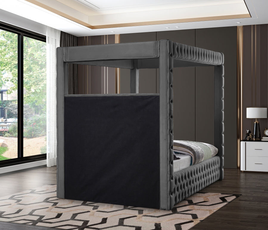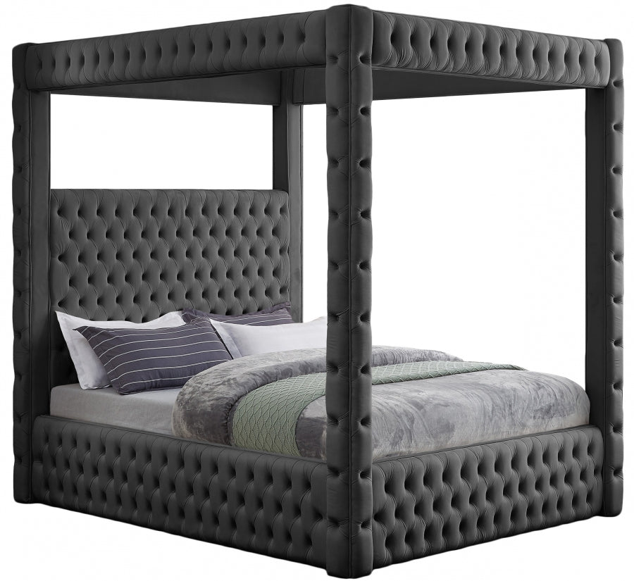 Créez un sanctuaire de chambre à coucher que vous ne voudrez plus jamais quitter avec ce lit en velours Royal en son centre. Portant son nom, ce lit un regard majestueux digne d'un roi (ou d'une reine). Étonnamment conçu, le lit Royal est doté d'un auvent qui domine le dessus du lit pour une version moderne d'un design intemporel et riche. Le capitonnage profond ajoute un aspect texturé tandis que le revêtement en velours doux renforce le design sophistiqué du lit.