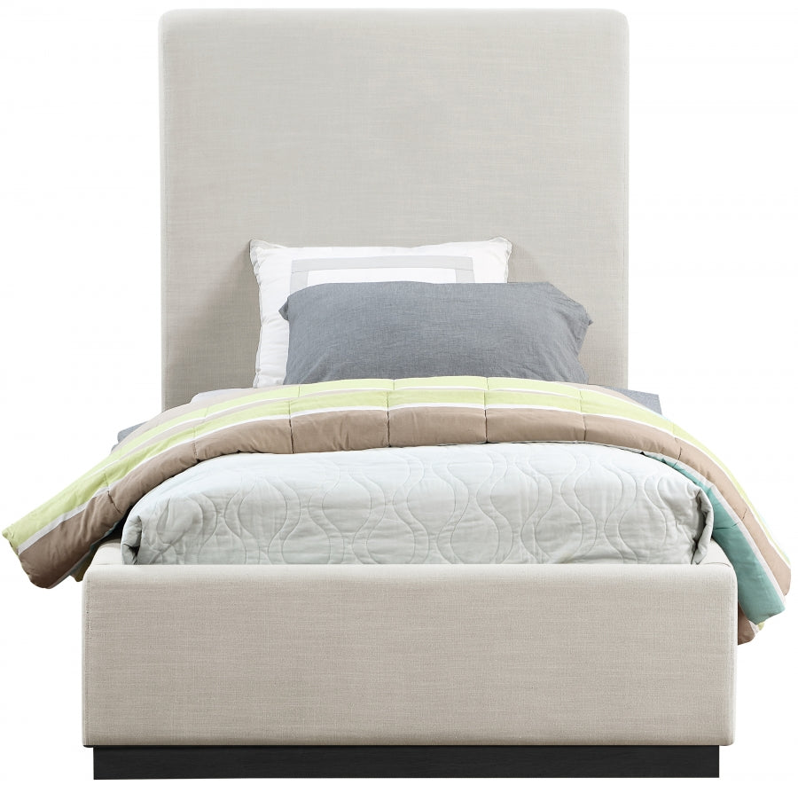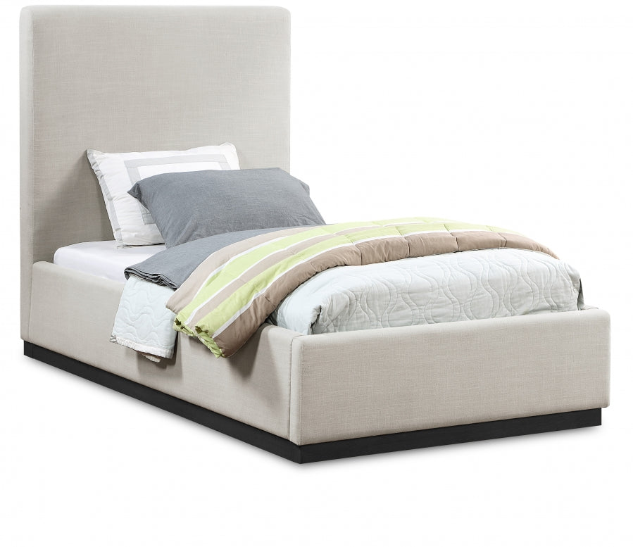 Donnez à votre chambre une ambiance royale en ajoutant ce lit en tissu texturé en lin Alfie au mélange. La tête de lit ultra haute de ce lit simple fait une impression audacieuse sous tous les angles et est recouverte d'un riche tissu texturé en lin qui forme un contraste agréable avec la base en bois massif au fini noir. La conception entièrement plate vous permet d'utiliser facilement ce lit sans sommier tapissier : un surmatelas suffit.