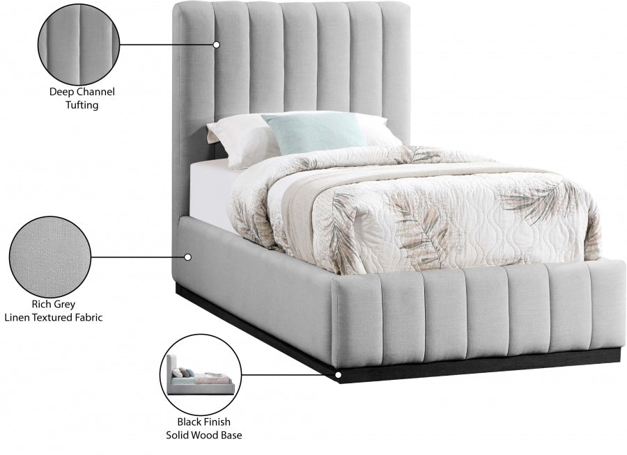 Réjouissez votre chambre en un instant avec ce lit de tissu texturé Lucia en lin. Rempli en tissu texturé en lin doux sur le touché sur sa tête de lit, son pied de pied et ses rails latéraux, ce beau lit complet a une tête de lit haute pour un look exigeant de l'attention dans votre pièce. Le canal du canal sur la tête de lit et le pieds-pied ajoute à sa beauté esthétique tout en fournissant une texture et une dimension. Le lit repose sur une base au fini noir qui est fabriqué à partir de bois massif pour une beauté et une durabilité durables.
