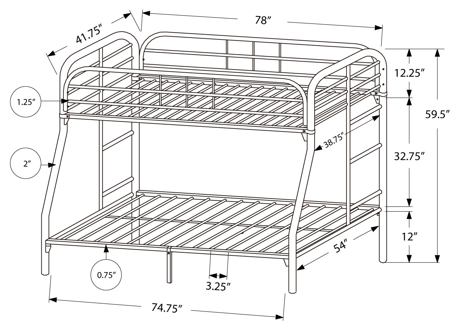 - Convient à un matelas standard de taille jumelle sur le dessus et à un matelas double / pleine grandeur en bas (non inclus)