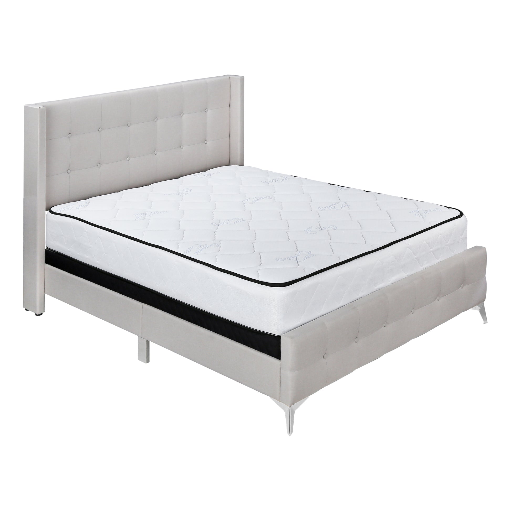 - Lit plateforme contemporain de taille queen, recouvert d'un tissu d'apparence lin beige chic sur un rembourrage en mousse sur tous les côtés, avec un capitonnage luxueux sur la tête de lit à oreilles et le pied de lit incurvé