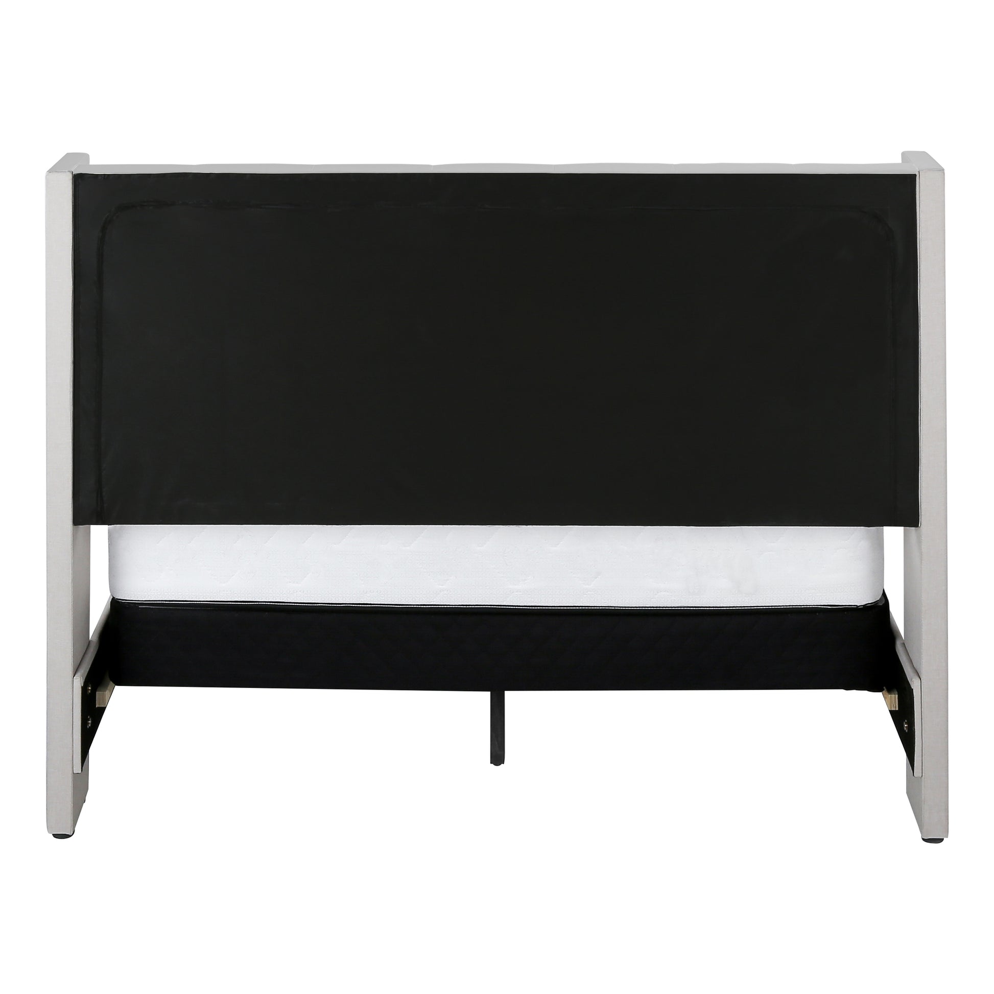 Créez un sanctuaire raffiné dans votre chambre à coucher en commençant par cette touche contemporaine sur un cadre de lit rembourré classique avec une tête de lit à oreilles. Ce cadre de lit queen est recouvert d'un tissu d'apparence lin beige neutre sur un rembourrage en mousse sur tous les côtés, avec un élégant capitonnage à la fois sur la tête de lit incurvée et le pied de lit pour un attrait luxueux. Les pieds de support sont recouverts du même matériau beige inspiré du lin pour une finition attrayante, et les pieds inclinés en métal chromé au niveau du pied de lit donnent à l'ensemble du lit une touche de modernité et de glamour. Un sommier et un matelas standard pour grand lit sont requis mais non inclus et doivent être achetés séparément. Toutes les pièces et les instructions de montage sont incluses dans le compartiment à fermeture éclair à l'arrière de la tête de lit.