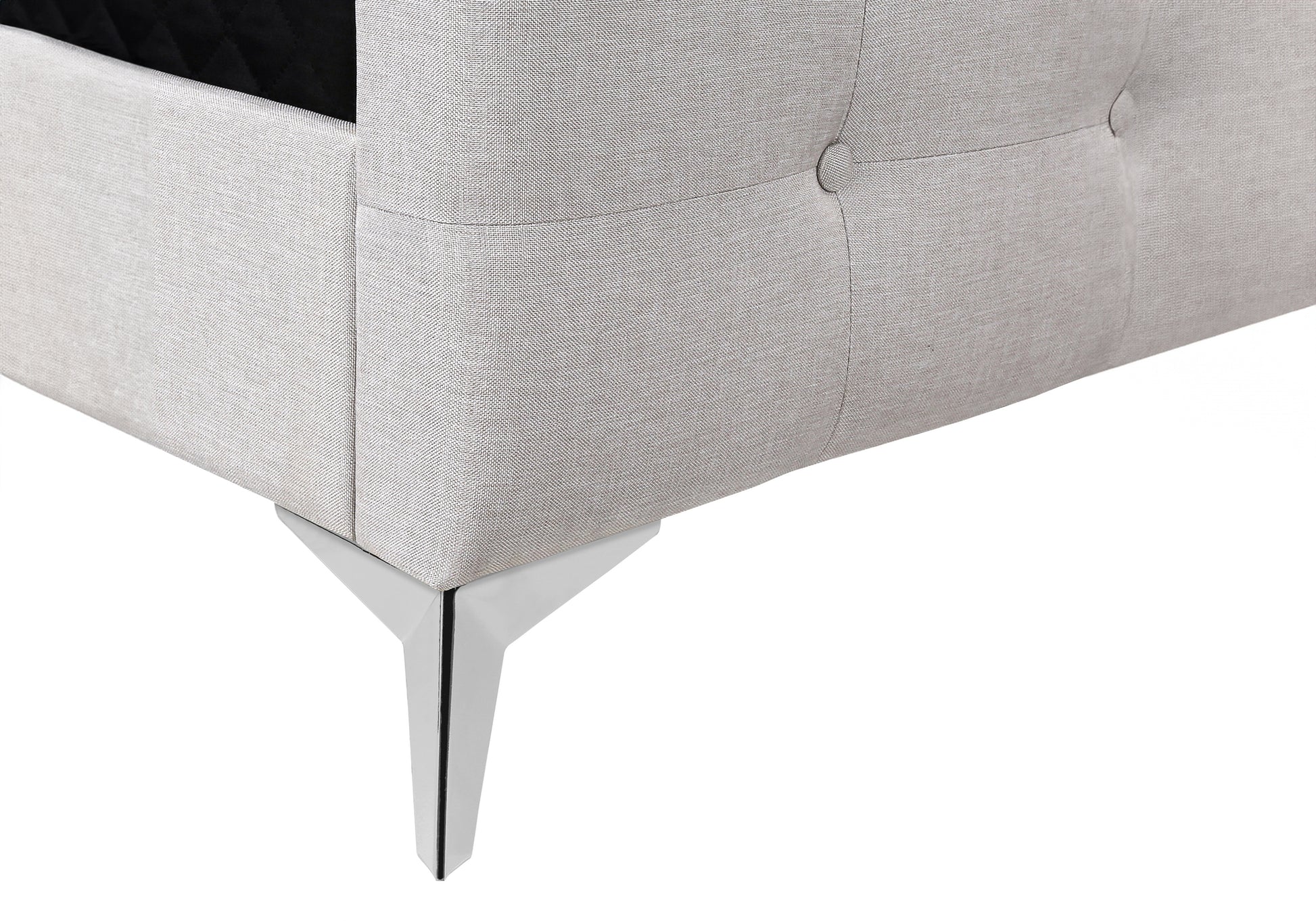 LIT - TAILLE QUEEN / LIN BEIGE AVEC PIEDS EN MÉTAL CHROMÉ ( Meuble Mtl )