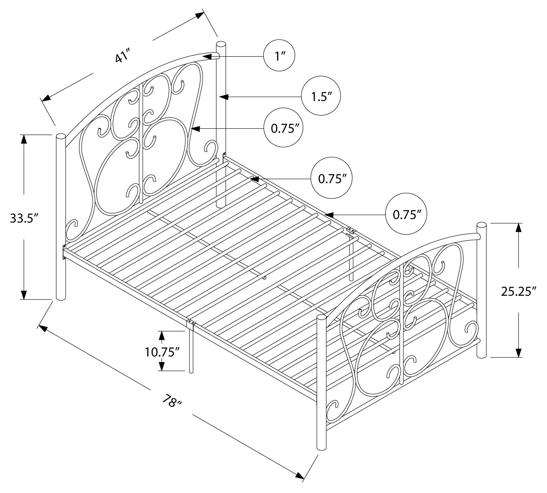 - Cadre de taille simple pour un matelas simple standard (non inclus)