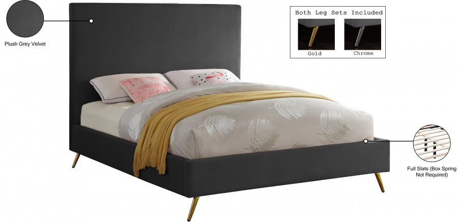 Enhardissez l'espace de votre chambre avec ce magnifique lit en velours Jasmine. La couleur neutre et le revêtement en velours chic et élégant font de ce lit une option distinctement élégante pour le sanctuaire de votre chambre à coucher. Le design contemporain s'harmonise bien avec un décor moderne, ce qui en fait le choix ultime pour la maison ultra-moderne. Les pieds en métal avec une inclinaison rétro caractérisent à ce lit un aspect fini. Parce que le lit ne nécessite ni sommier ni sommier, il offre un profil svelte et minimaliste.