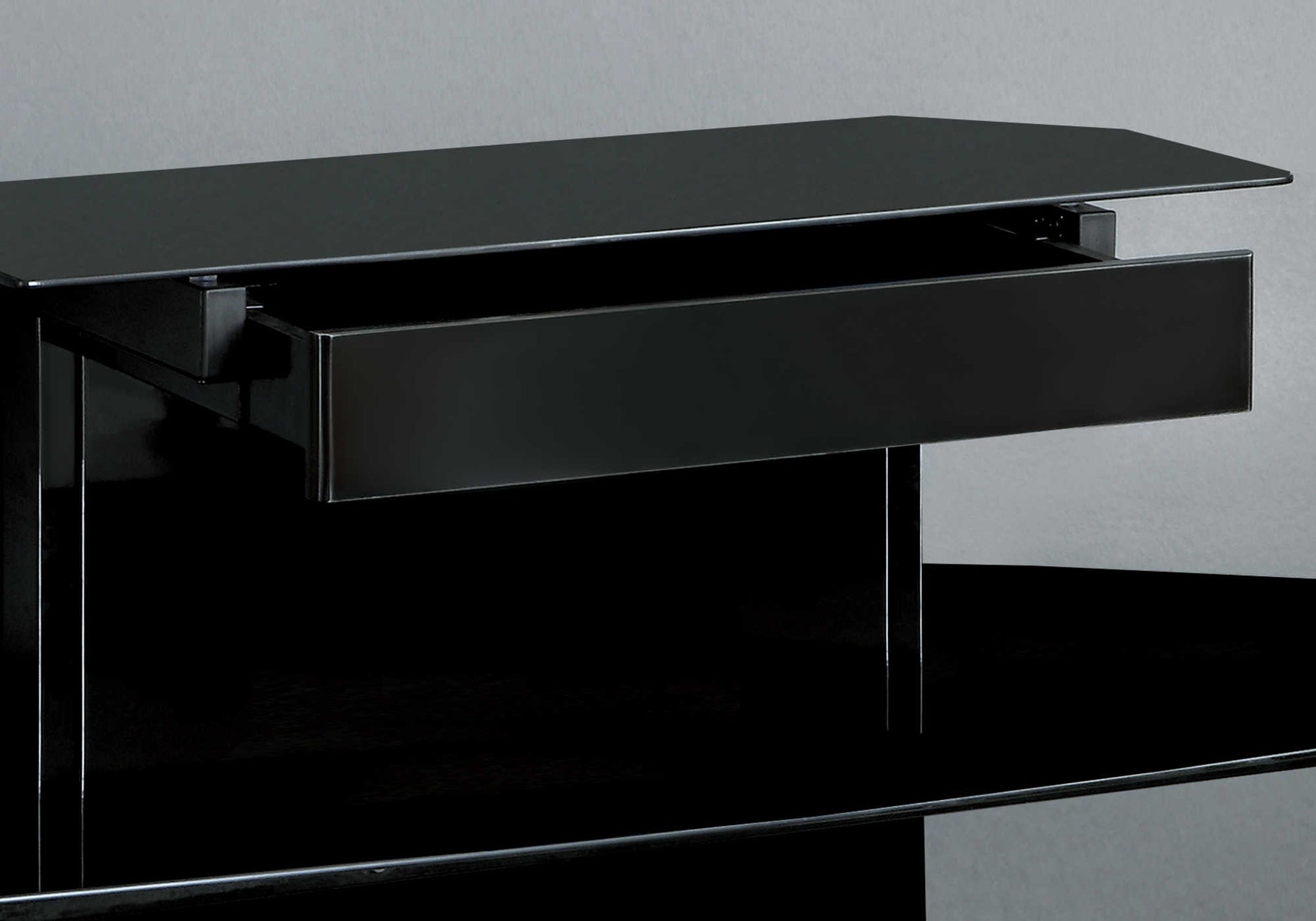 - Les étagères en verre dégradé noir brillant sont faciles à nettoyer et parfaites pour presque tous les téléviseurs.