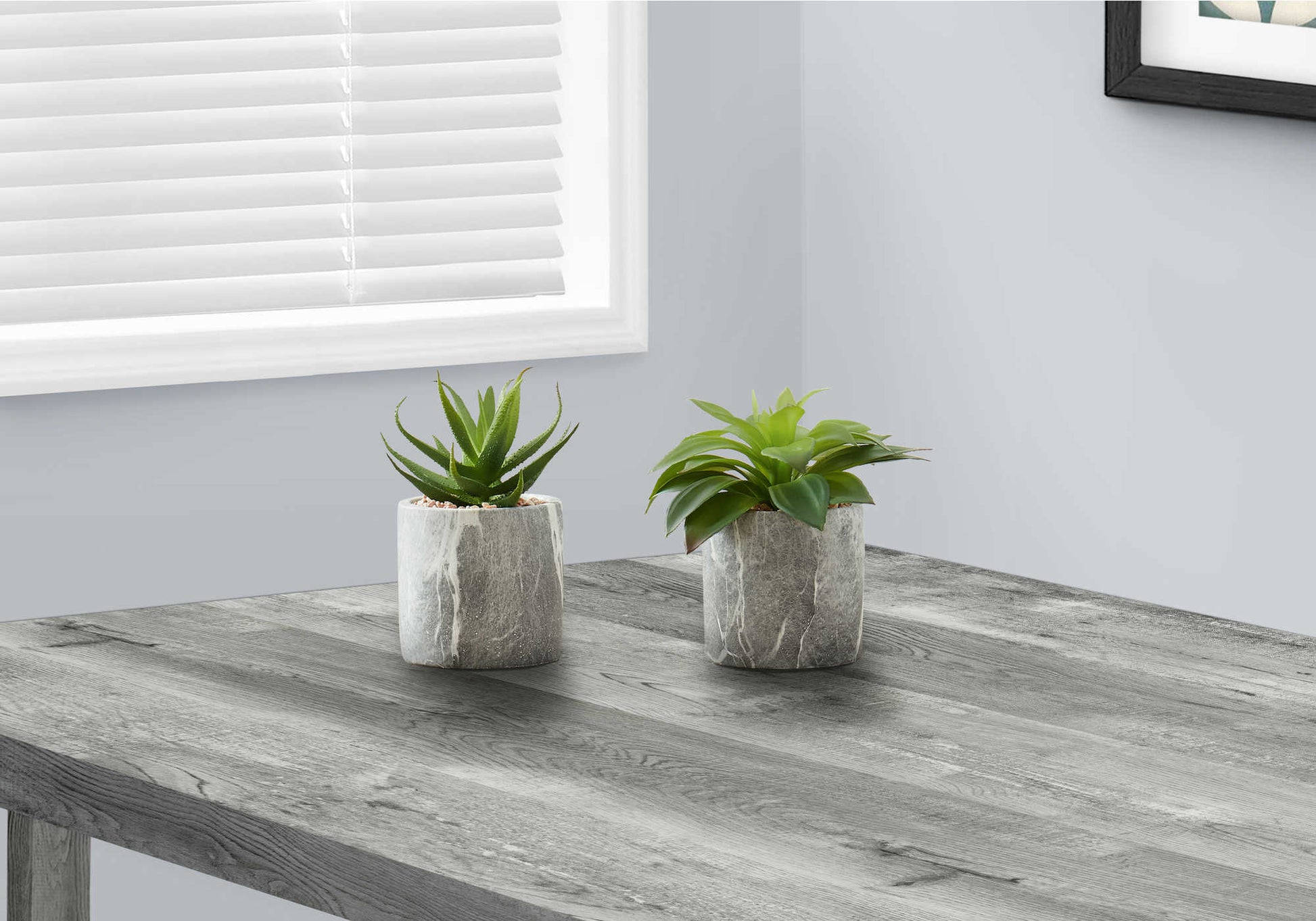 - Chaque ensemble comprend deux 7" ; grandes fausses plantes succulentes nichées dans 4quot; pots en ciment d'aspect marbre gris avec des galets pour un look réaliste et sans effort