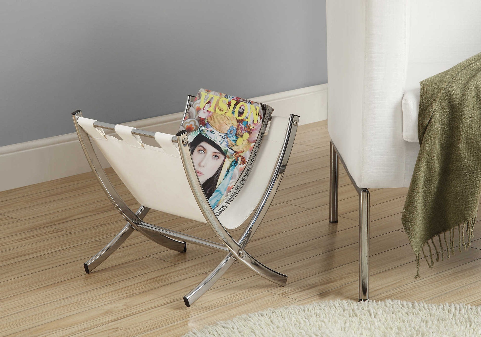 - Le porte-revues autoportant en cuir blanc permet de ranger facilement n'importe quel assortiment de magazines, journaux ou livres
