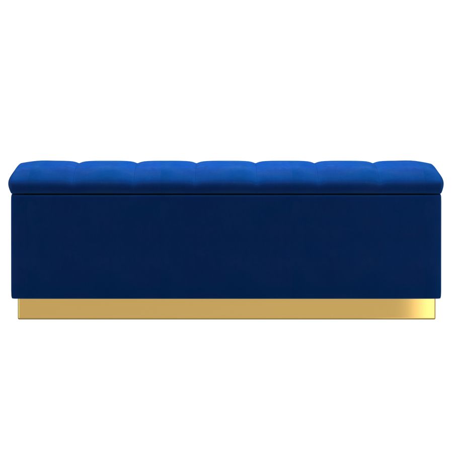 L'aspect haut de gamme et la fonctionnalité sont réunis dans ce banc de rangement contemporain. Le dessus à charnière abrite un compartiment de rangement profond qui est parfait pour les chaussures, les couvertures et de nombreux autres articles. Le similicuir doré enroulé autour de la base en bois donne un coup de pouce inattendu au style. Magnifiquement fini avec des détails de couture de panneau sur le revêtement en velours. Dans une chambre, un couloir ou près de l'entrée, ce banc fera assurément sensation.