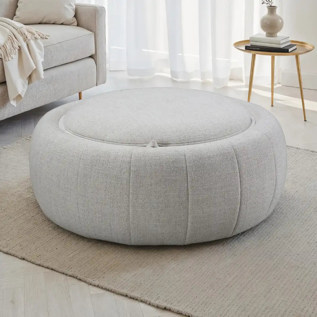 Le design intelligent rencontre le luxe quotidien avec l'Ottoman de Rangement Oros. Plus qu'un simple repose-pieds, cette pièce maîtresse de la collection Barksdale est un véritable caméléon domestique. Sa silhouette ronde et généreuse de 40 pouces est habillée d'un tissu "Monique Linen Light Grey" raffiné, apportant une texture douce et une neutralité lumineuse à votre espace de vie.