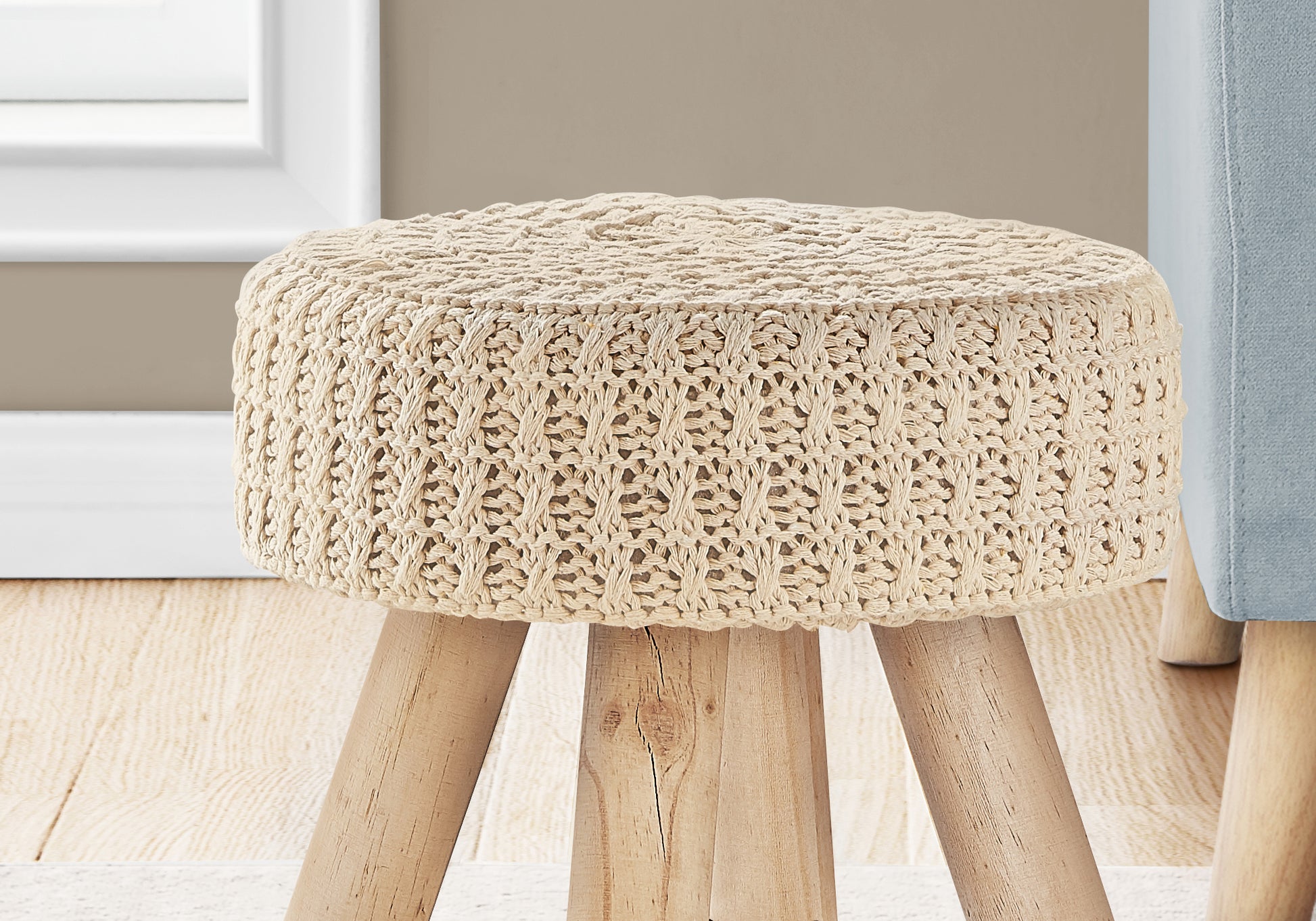 - Pouf rond avec siège rembourré pour plus de confort et recouvert d'un tissu tricoté beige pour un look élégant