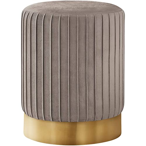 Ce pouf exceptionnel attire l'attention avec sa forme cylindrique unique et ses détails distinctifs. Recouvert d'un tissu de velours marron clair au toucher luxueux, les côtés hauts sont plissés pour un attrait visuel et textuel tandis que le siège rembourré est lisse pour offrir un confort supérieur. Une base en métal robuste au fini doré brillant complète le look glamour moderne. Aussi polyvalent que chic, ce pouf rond est idéal dans un salon ou une chambre comme repos-pieds pour reposer vos pieds et comme table de fortune pour placer un livre ou un appareil mobile, ou comme pouf où et quand vous avez besoin d'un siège supplémentaire.