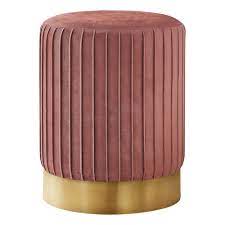 Ce pouf exceptionnel attire l'attention avec sa forme cylindrique unique et ses détails distinctifs. Recouvert d'un tissu de velours rose foncé au toucher luxueux, les côtés hauts sont plissés pour un attrait visuel et textuel tandis que le siège rembourré est lisse pour offrir un confort supérieur. Une base en métal robuste au fini doré brillant complète le look glamour moderne. Aussi polyvalent que chic, ce pouf rond est idéal dans un salon ou une chambre comme repos-pieds pour reposer vos pieds et comme table de fortune pour placer un livre ou un appareil mobile, ou comme pouf où et quand vous avez besoin d'un siège supplémentaire.