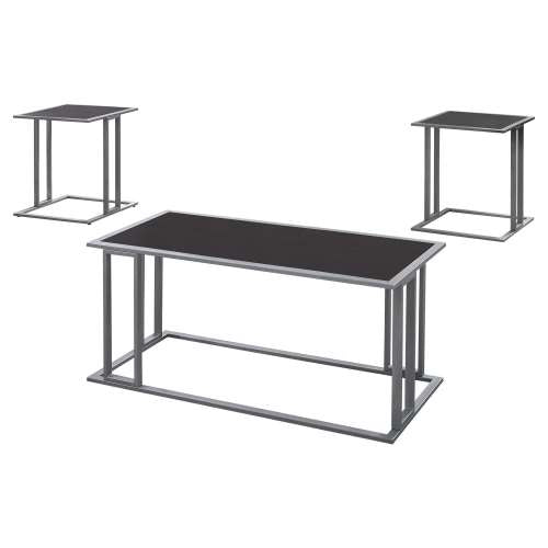 - L'ensemble de table 3 pièces comprend une table basse rectangulaire et deux tables d'appoint carrées assorties