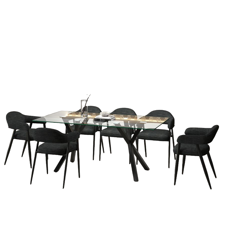 Stark/Archer Ensemble de salle à manger 7 pièces en noir avec chaise anthracite ( Meuble Mtl )
