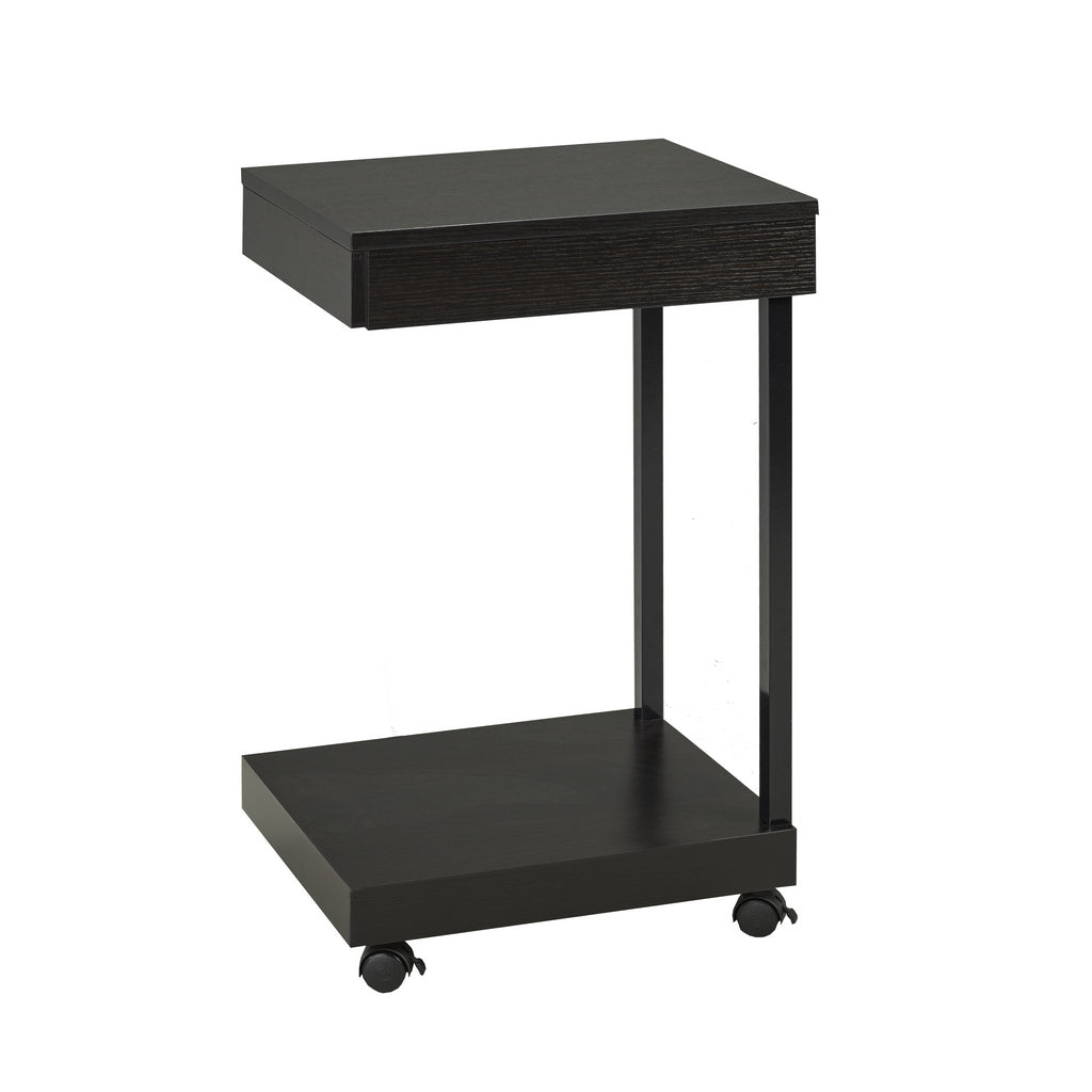 Parfait pour les petits espaces, ce support peut être utilisé à diverses fins. Son design simpliste comporte deux niveaux : un niveau inférieur pour les objets décoratifs ou pour garder les éléments essentiels facilement accessibles, et le niveau supérieur est idéal pour un ordinateur portable. Installé sur quatre roulettes, le support peut être déplacé facilement ; Utilisez-le en position assise ou debout, et roulez-le facilement lorsqu'il n'est pas utilisé. Le tiroir à panneau plat affleurant offre un stockage supplémentaire hors de vue pour les CD, chargeurs et autres petits accessoires