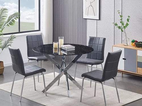 Table : verre en marbre noir trempé de 10 mm avec pieds chromés