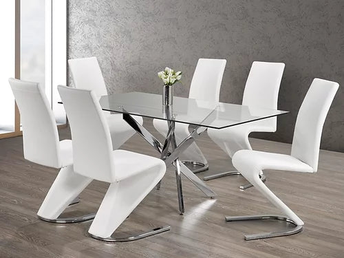 Chaises : rembourrées en forme de « Z » blanc avec pieds chromés
