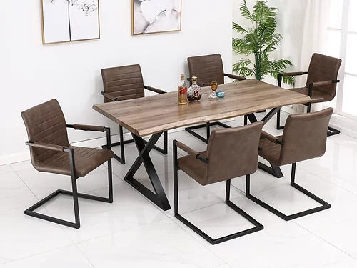 Table en bois imitation Live Edge avec pieds en forme de X en métal noir