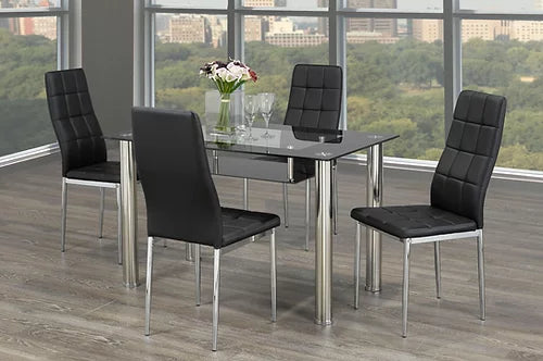 Table en verre trempé noir de 10 mm avec étagère noire et pieds chromés