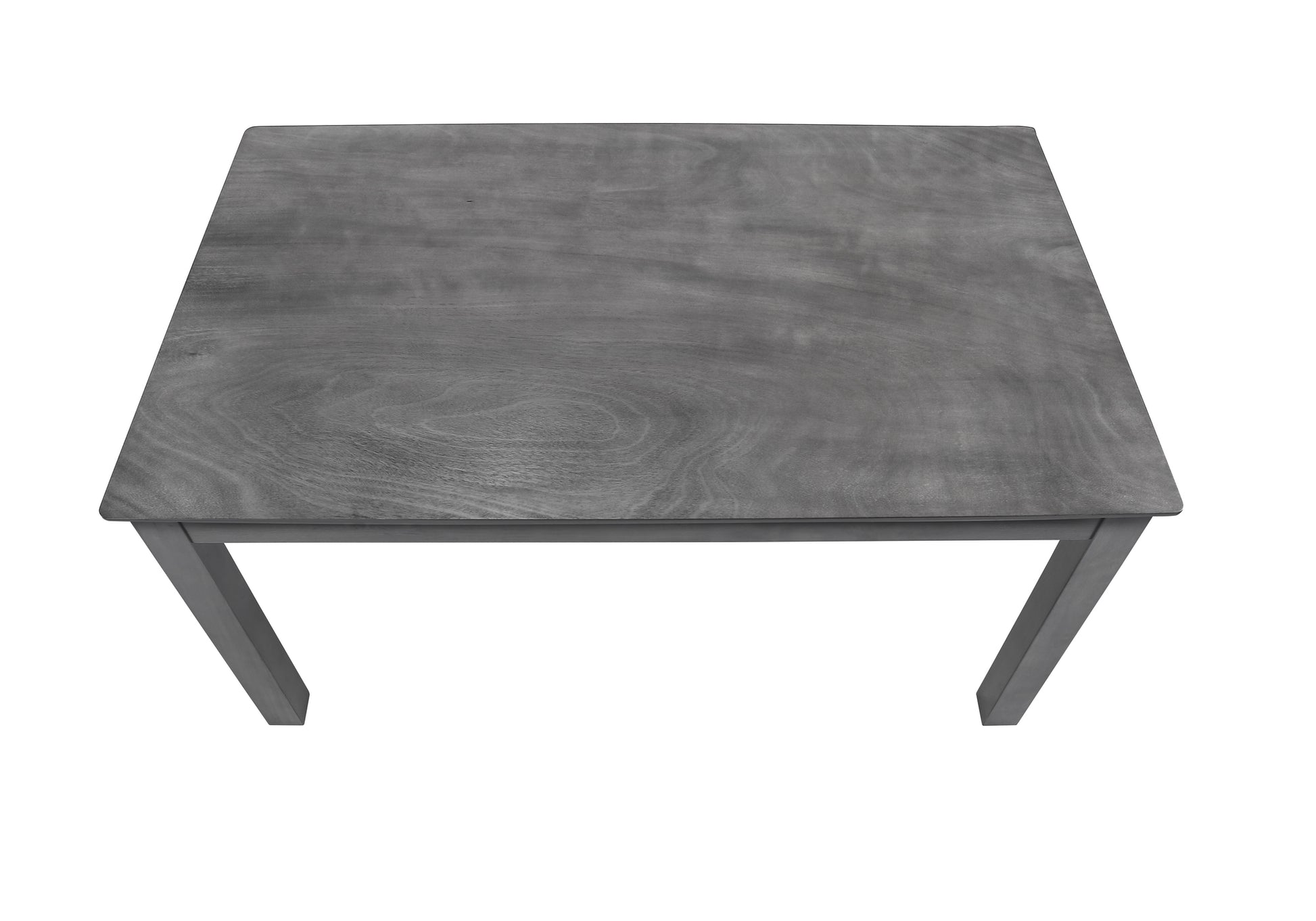 - Élégamment conçu 60" longue table à manger rectangulaire pour un repas décontracté avec un plateau biseauté facile à nettoyer et soutenu par des pieds épais de style bloc, le tout avec une finition en placage gris délavé.