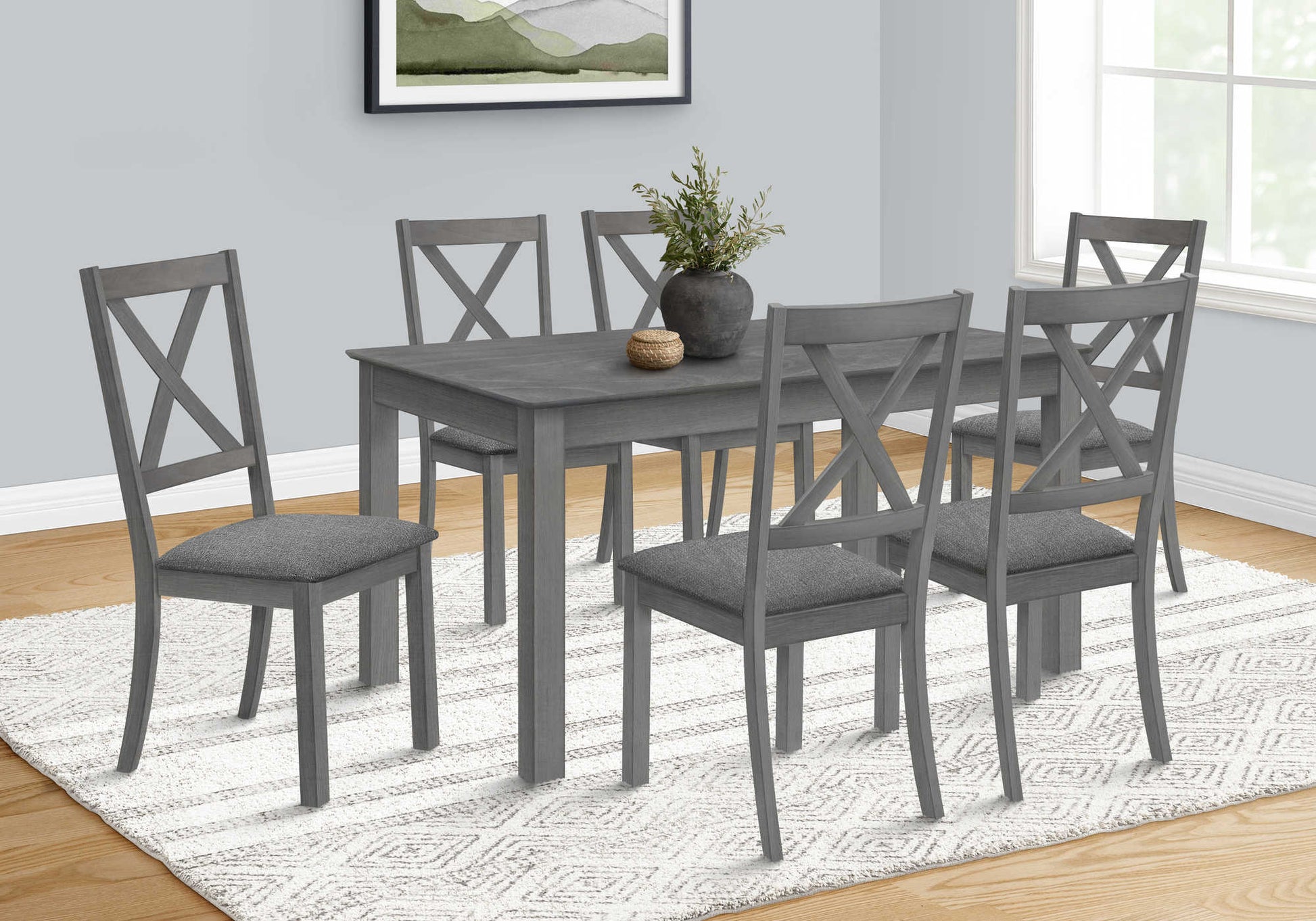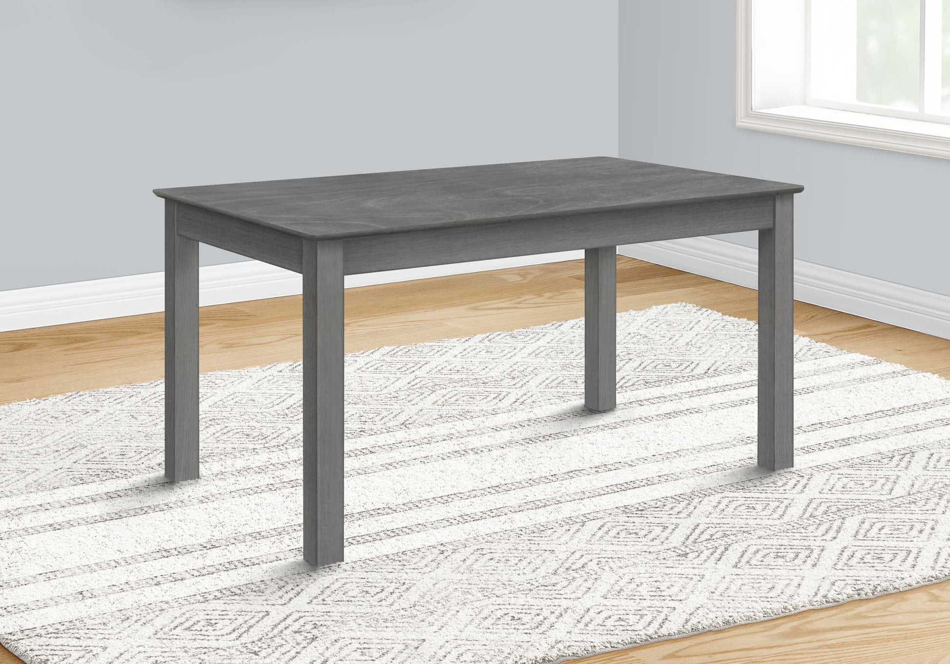 Transformez votre cuisine ou votre salle à manger avec cette table à manger de style transitionnel au design durable ! Parfaitement dimensionné pour s'adapter à une cuisine ou une salle à manger, cette table rectangulaire de 60" peut accueillir jusqu'à 6 personnes. Le plateau de table biseauté et facile à nettoyer avec un placage gris délavé lui confère une finition élégante et les pieds. épais en forme de bloc offre un support solide. Facile à assembler avec des instructions illustrées complètes et le matériel inclus pour votre commodité. Cette table à manger bénéficie également d'une garantie limitée de 2 ans contre les défauts de fabrication afin que vous puissiez être. Assurez-vous d'obtenir un produit de qualité. Complétez votre salle à manger en associant cette table à des chaises de salle à manger assorties et à un banc (vendus séparément). Les repas familiaux décontractés n'ont jamais été aussi beaux !